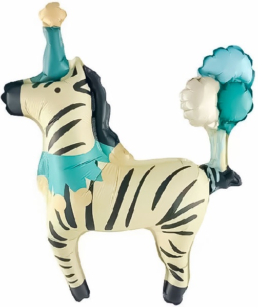 Фольгированные шары мини-фигура, китай, цирк, зебра в колпачке, 15''/38 см, 1 шт